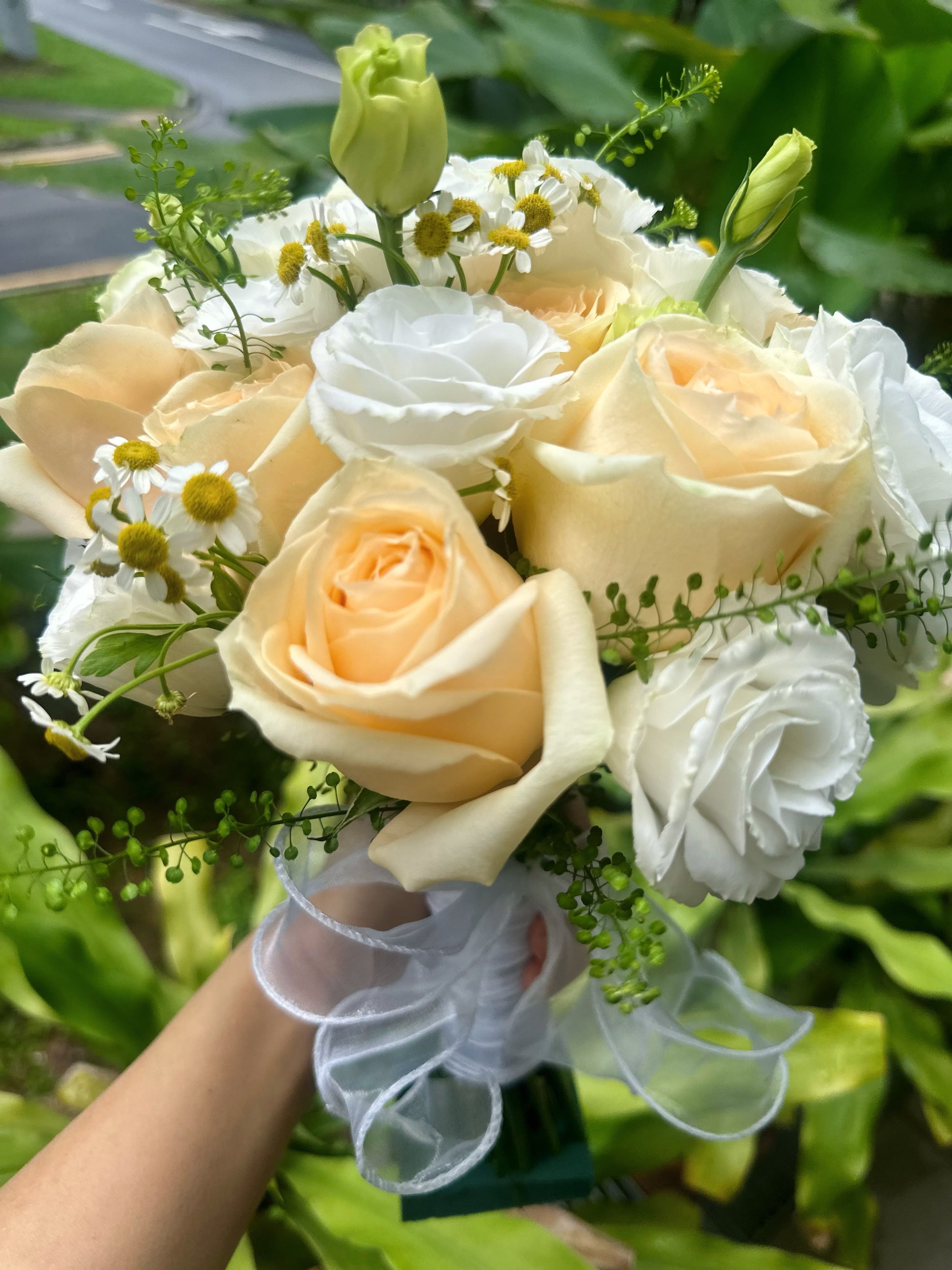Elevate your special day with our beautiful BB 26 bridal bouquet. Crafted with delicate Champagne White roses, it exudes elegance and sophistication. Perfect for the modern bride, this bouquet is sure to make a lasting impression. Say "I do" with style and grace.