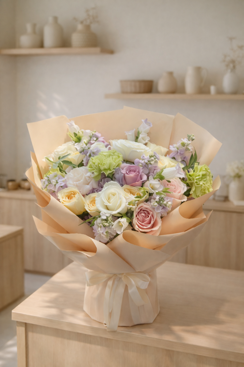 A beautiful mixturn of flower bouquet, reminiscent of a work of art from an exclusive, high-end gallery.