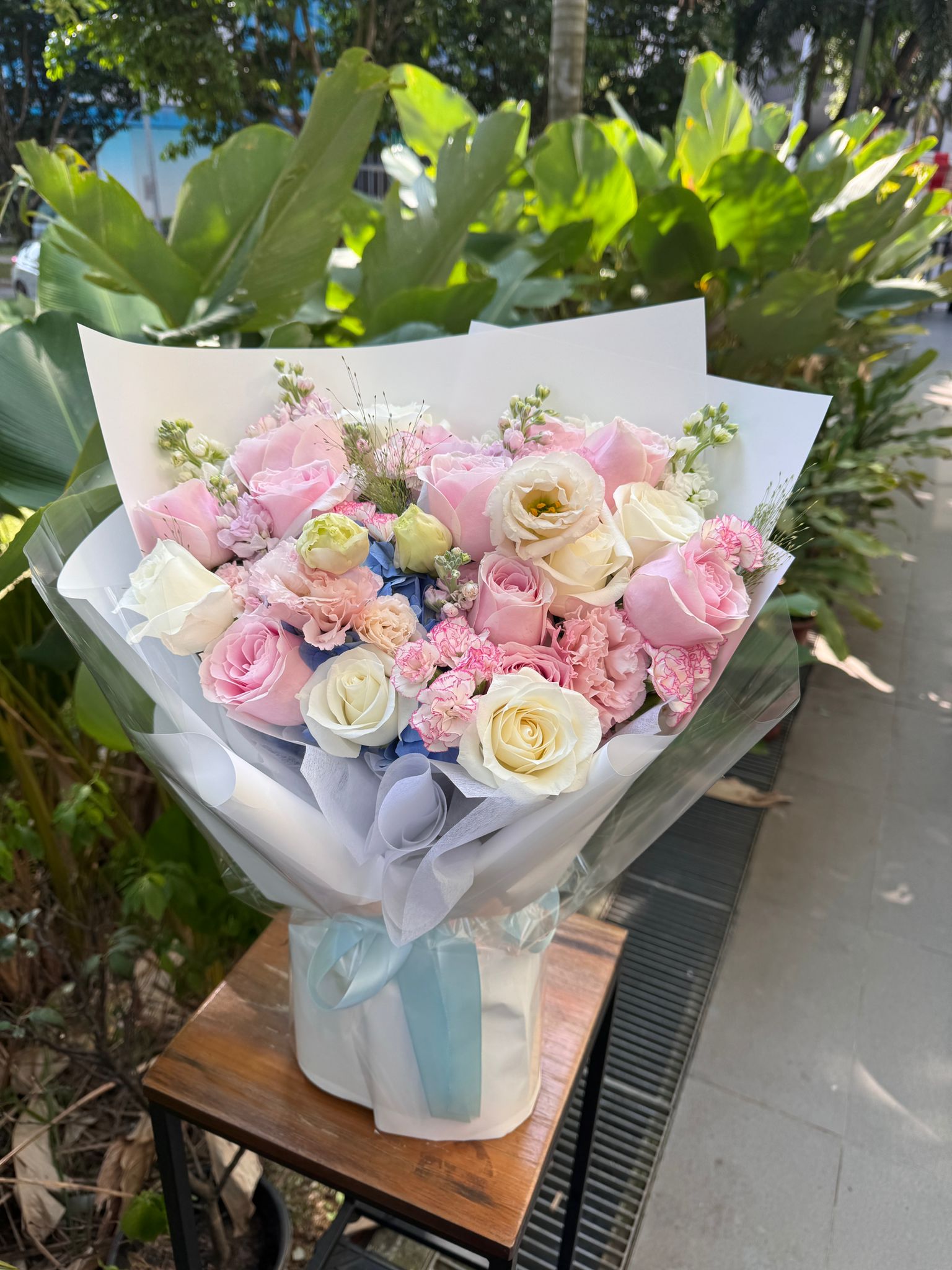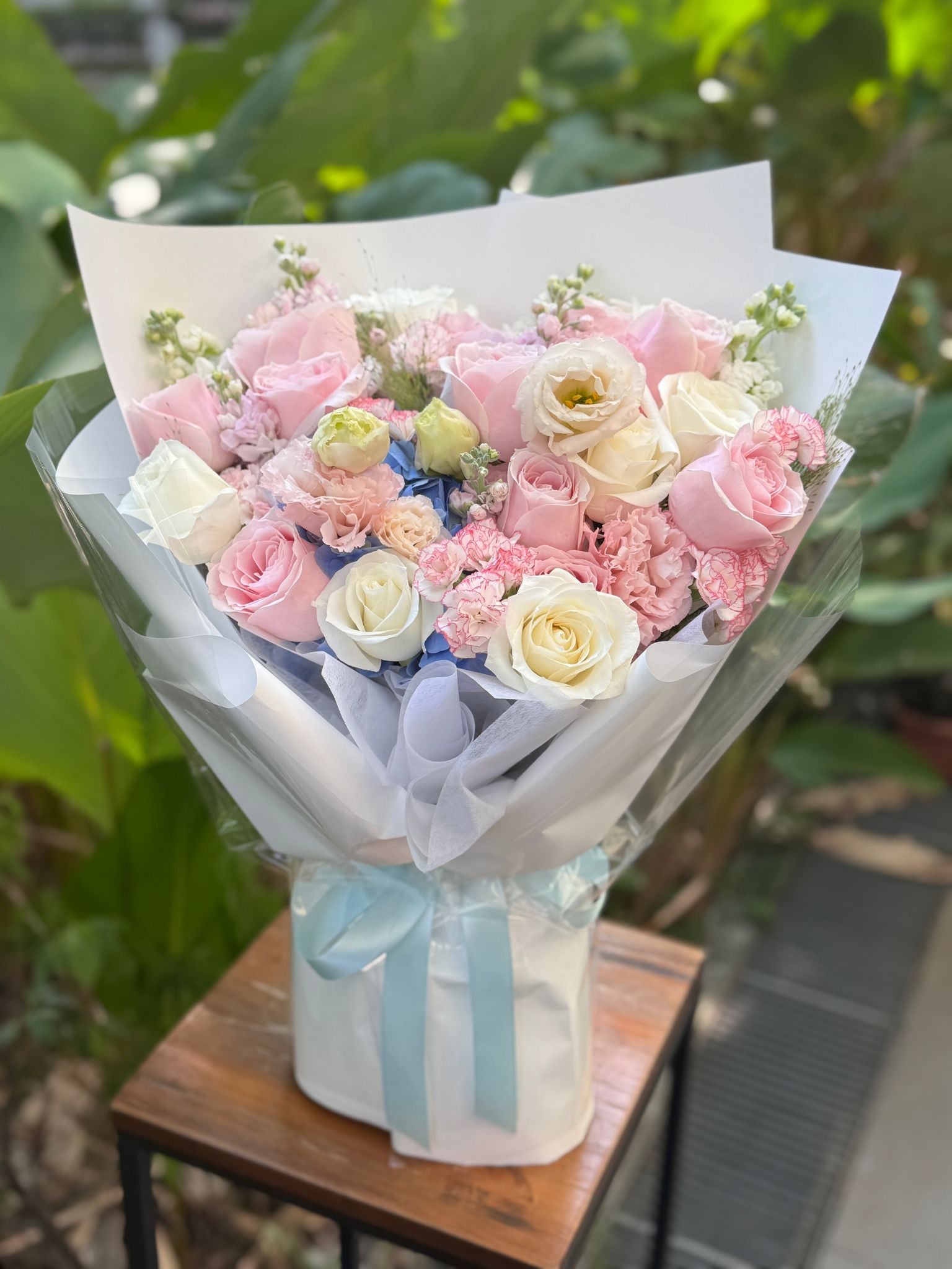 A beautiful mixturn of flower bouquet, reminiscent of a work of art from an exclusive, high-end gallery.