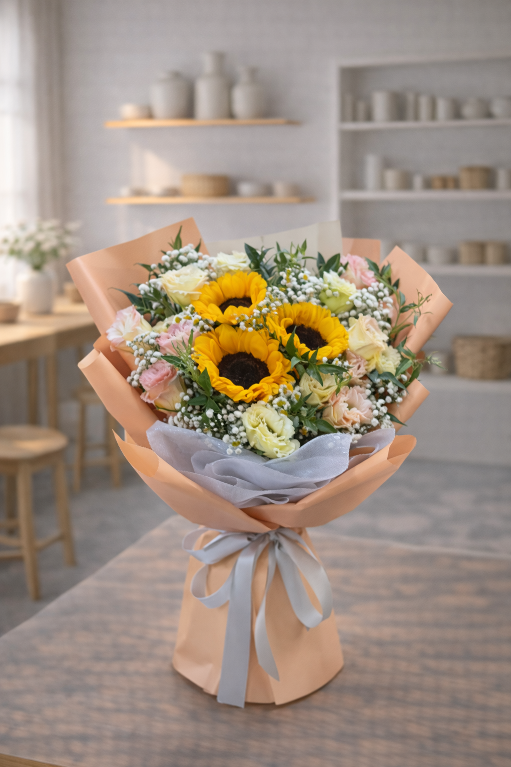 A beautiful mixturn of flower bouquet, reminiscent of a work of art from an exclusive, high-end gallery.