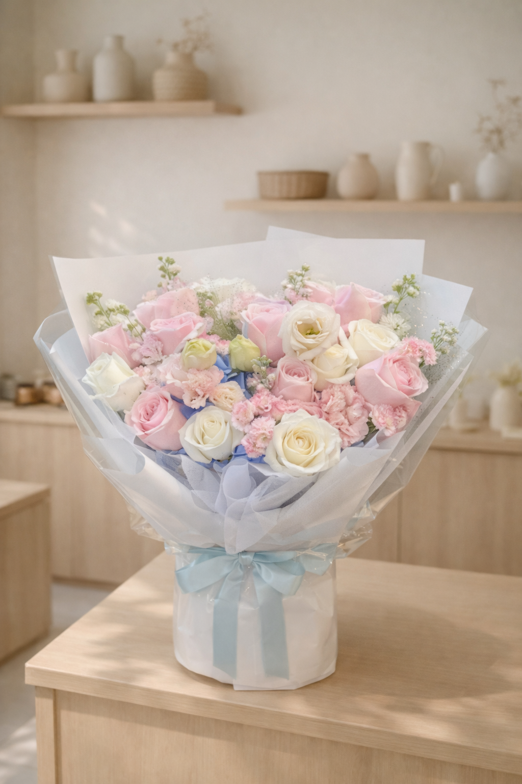 A beautiful mixturn of flower bouquet, reminiscent of a work of art from an exclusive, high-end gallery.